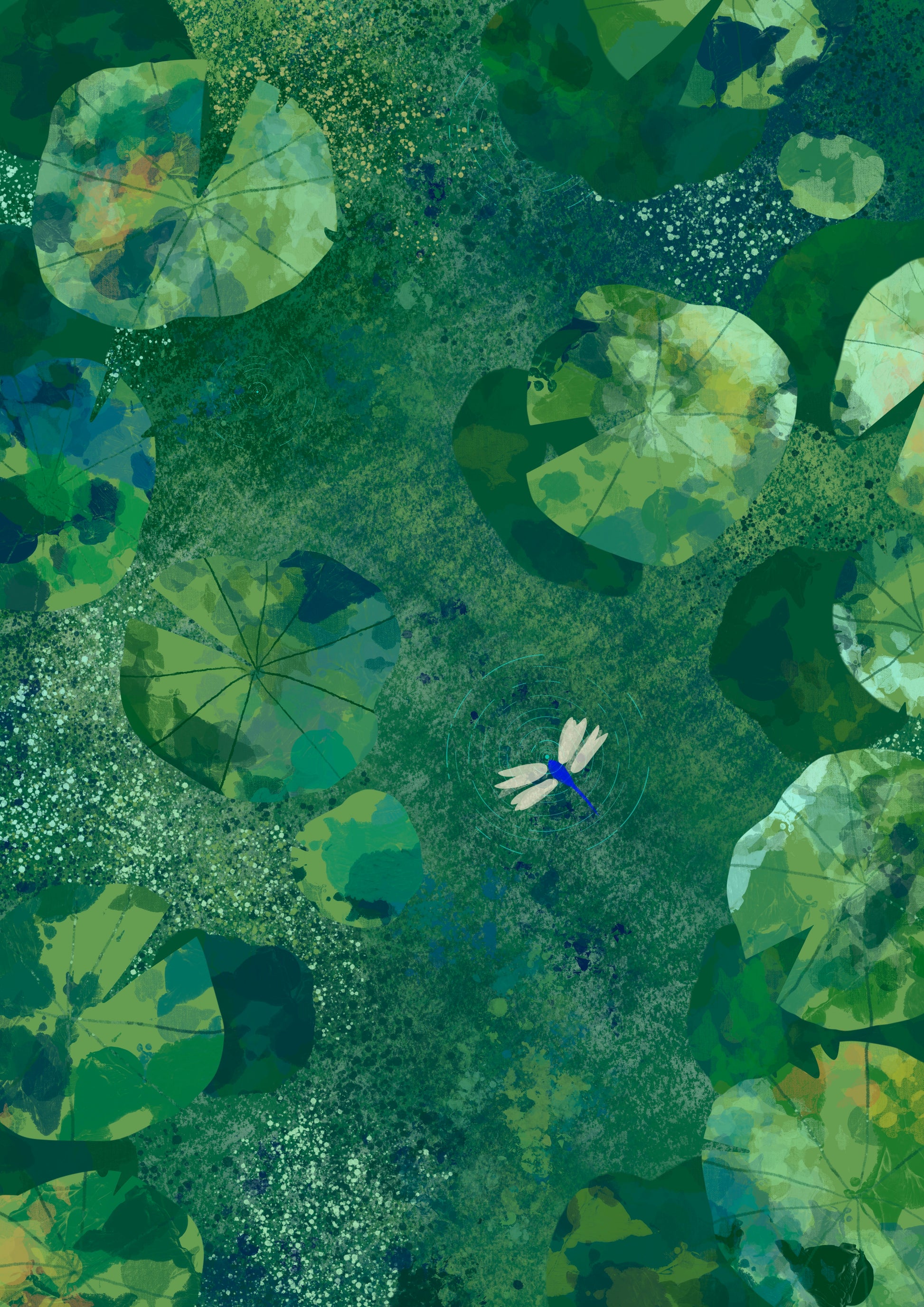 Reminds me of the kulam (freshwater pools) in Kerala after a misty morning trickle of rain; the smell of damp moss in the air, lotus leaves floating idly on the murky waters while the dragonfly is at play.