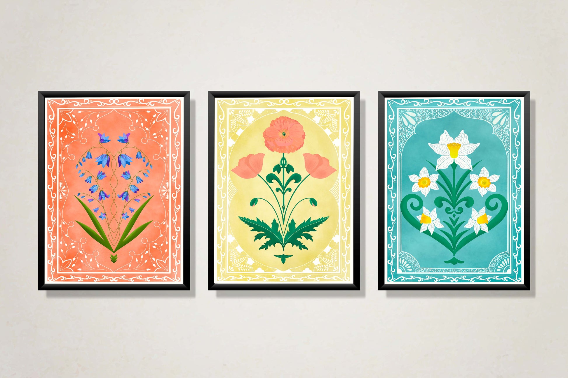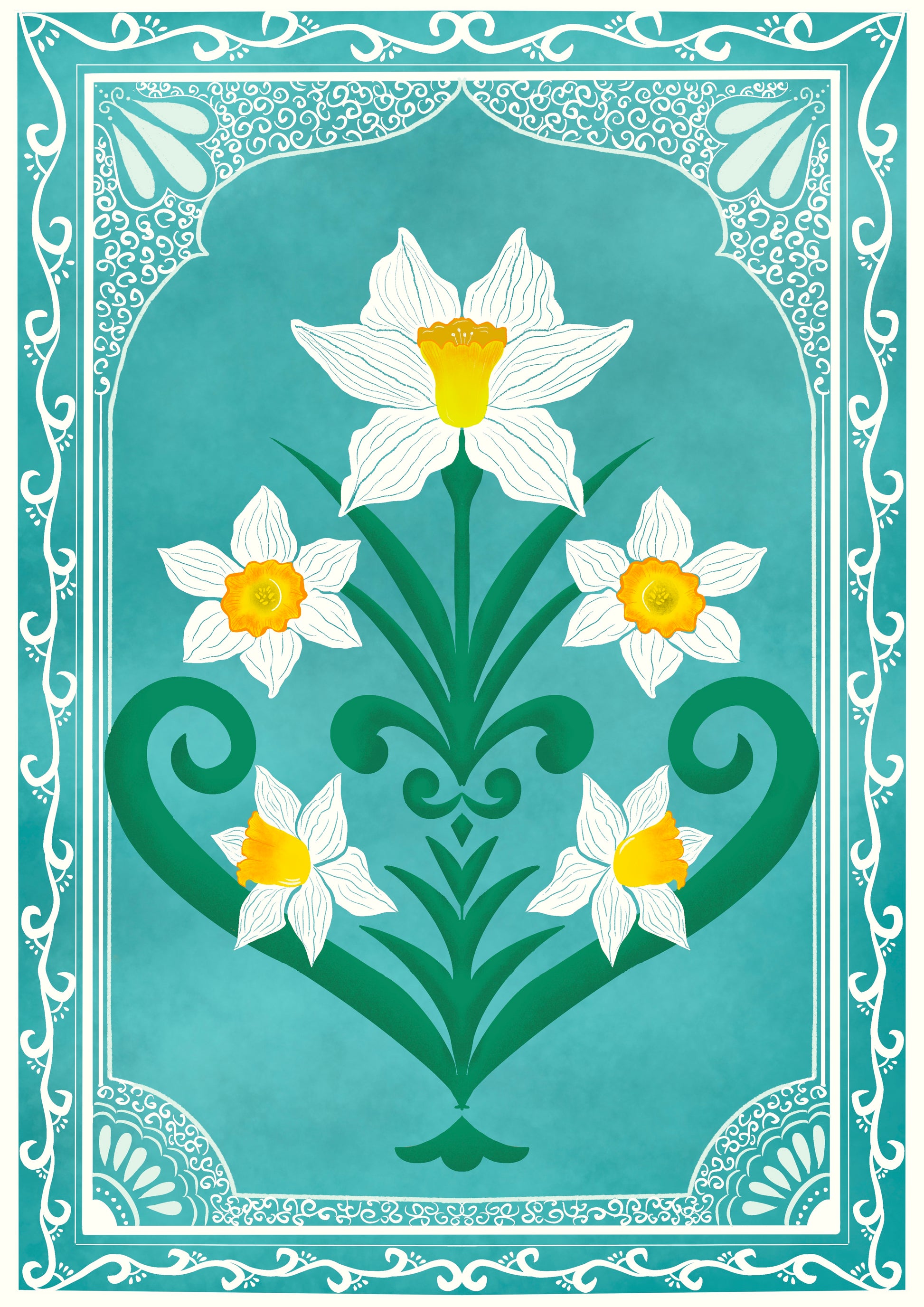 Many a poets’ muse, the Daffodil or Nargis (as it is lovingly called in India) also features in the timeless Greek legend of Narcissus. The Daffodil is one of three celebrated in the Blooms of spring series, painted in a style inspired by Mughal motifs.